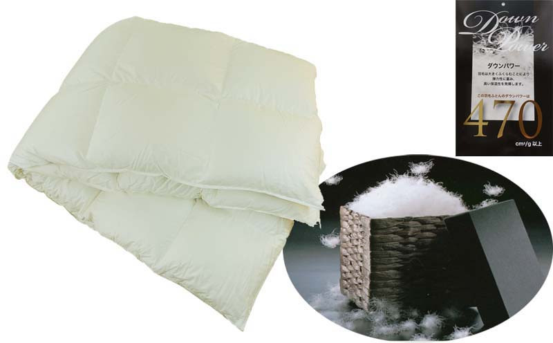 羽毛にふとんの中と同程度の圧力をかけたときの、羽毛1gあたりの体積がダウンパワー(cm3/g)の数値です。 数値が大きいほど高品質な羽毛であると言えます。