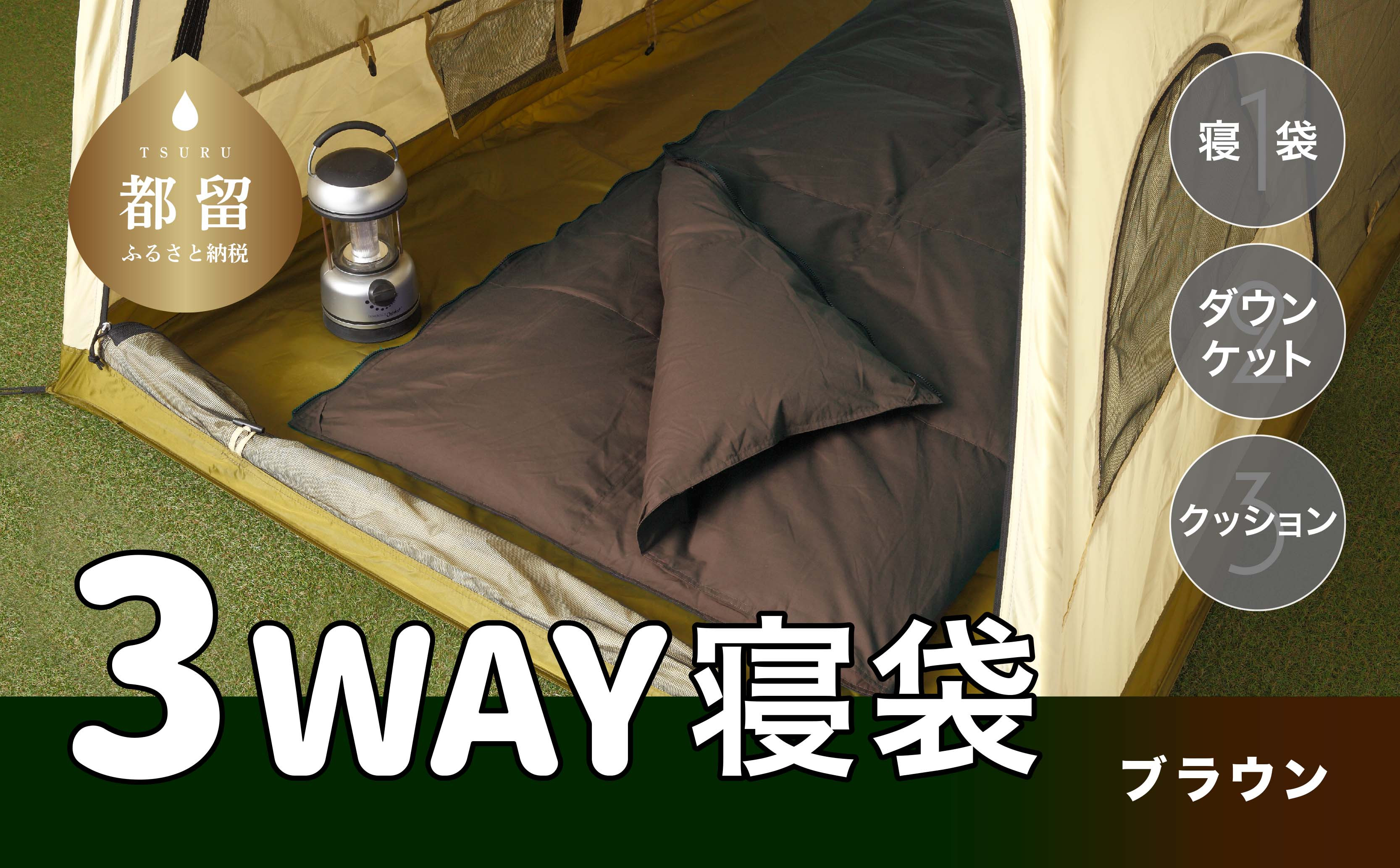 内ポケットが便利!掛け物やクッションなど多用途に使える3WAYスリーウェイ寝袋 3WAYスリーウェイ寝袋 専用ケース付き 環境に優しい再生羽毛使用 ブラウン無地 日本製 キャンプ 車中泊 クッション ダウンケット 来客用 災害用