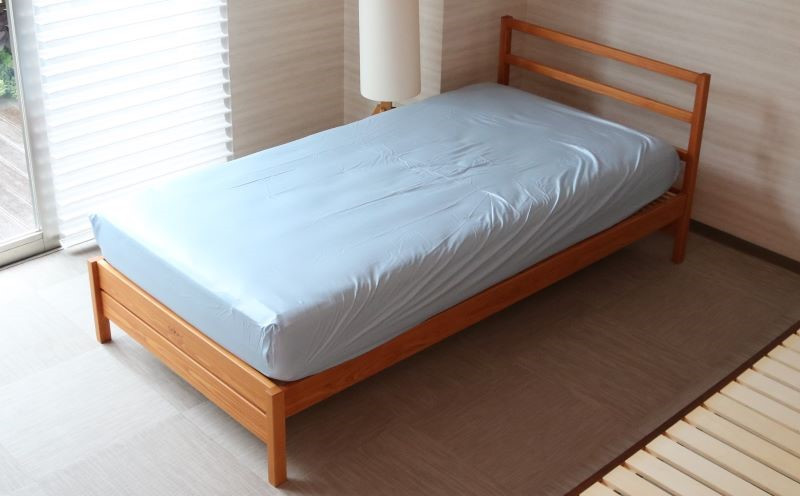 【製品への思い】 肌に直接触れる製品なので、安心してご使用いただけるように天然繊維を使い、肌触りにこだわり製品化しています。 【製品について】 マットレスの厚みにある程度合わせられるように、9~11cmの厚さのマットレスにご使用いただけます。 通常のBOXシーツとは違い、四つ角の下の角を無くしある程度の厚みに対応出来る仕様にしています。 着脱も楽なので日々の手間もストレスなくお使いいただけます。 【生地の特徴】 ※綿100%のサテン織生地を使用した商品です。 サテンは、平織りなど他の織り方の生地に比べ、生地の表面に凹凸の織り目が少ないため、滑らかな風合いになり、肌に触れていても心地よい感覚です。 綿を100%使用しているので、綿の上品な光沢が全体に広がり高級感が出ています。また張りのある生地になります。 発色が良いため、色が綺麗に出るのも特徴です。 【洗濯方法】 ※お洗濯による縮みや、しわがございます。下記お洗濯方法を必ずお守りください。 ・ネットに入れて手洗いまたは洗濯機で弱い水流でやさしく洗ってください。 ・風合いを保つために形を整えて干してください。 ・タンブラー乾燥機のご使用はお控えください。 ・色落ちしやすい商品と一緒に洗わないでください。 ・ドラム式洗濯機は、少ない水で洗うため、生地を痛める可能性がございます。
