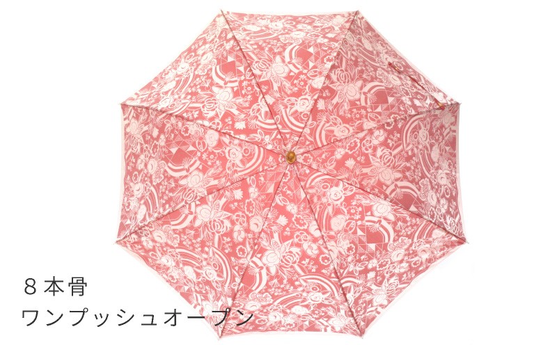 世界唯一の老舗、一貫製造、富士山の雪解け水で染める、職人技の粋を集めた逸品 【槙田商店】晴雨兼用長傘 kirie 更紗 ルージュ | 傘 かさ 雨具 高級 晴雨 兼用 UV 日焼け ギフト ファッション 日傘 プレゼント 化粧箱 老舗 プレゼント お祝い 母の日 ギフト