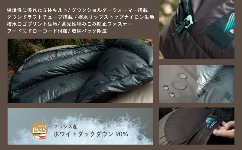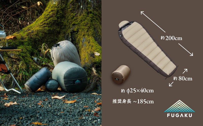 アウトドアシーンに羽毛布団のあたたかさを届ける「FUGAKU」のマミー型寝袋 【FUGAKU】MUMMY SLEEPING BAG 850g マミー型寝袋 ダウンシュラフ ベージュ