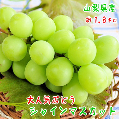 | 容量 | ■お礼品の内容について ・ぶどう(シャインマスカット)[約1.8kg(2~5房)] 原産地:山梨県山梨市産 |
