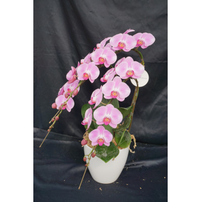 奥山洋蘭園独自の寄せ方で、お花の形も良く、花持ちもよく、長く鑑賞できます。