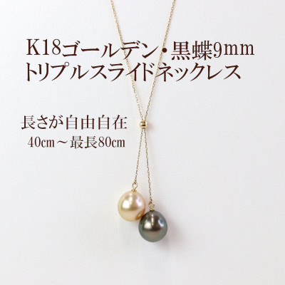 チョイスPayポイントと交換できる品 K18ゴールデン・黒蝶真珠トリプルスライドネックレス最小40cm~最大80cm_金 18金 18K ネックレス アクセサリー クリスマス 誕生日 バースデー ギフト【1366891】