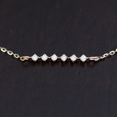 センターに小さなダイヤモンドが計6pcs一列に並んだバーがアクセントになったデザイン。