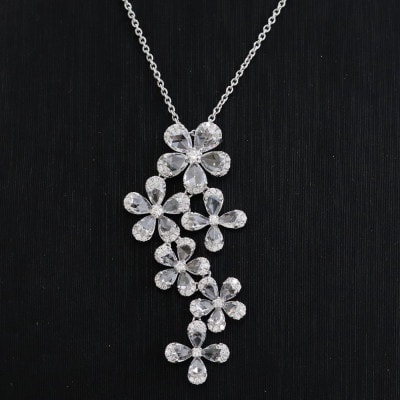 インクルージョンのない透き通るような輝きを放つローズカットダイヤモンドで花モチーフにした豪華なペンダント。