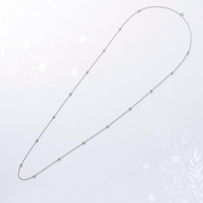 トータル1カラットの天然ダイヤモンドを贅沢に16ヶ所使用しました。80cmのロングネックレス全体にボリュームを持たせたフォルムが美しく、装いを華やかに演出します。