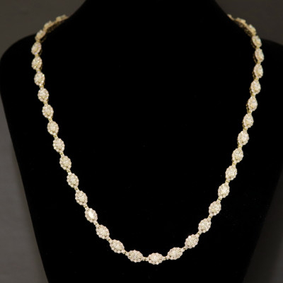 マーキスシェイプのタイヤモンドをメレダイヤモンドで取巻き、全周に連なる豪華なネックレス。