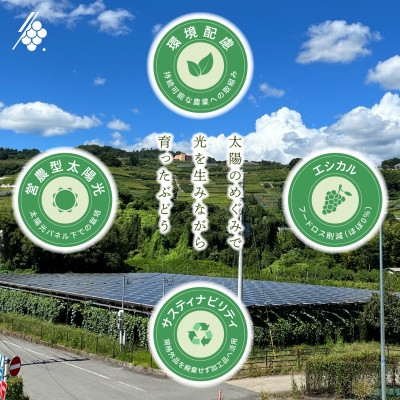 | 容量 | ■お礼品の内容について ・シャインマスカット[350g×8パック] 原産地:山梨県山梨市 ■生産者の声 株式会社NeoNのシャインマスカットは、特別な環境で栽培しております。 太陽光パネルの下で栽培をすることで、自然の恩恵を最大限に受け、果実にとって最適な日照条件で栽培を行っております。 この環境はシャインマスカットの成長に必要な太陽光をしっかり確保しつつ、過剰な直射日光から守ることで、 果実の甘さと香りを一層引き立てる役割を果たしています。 株式会社NeoNは環境に配慮しながらも高品質なシャインマスカットの栽培を行っております。 |