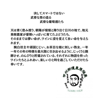 山梨市下栗原で小林さんが栽培するマスカットベーリーAを野生酵母により酸化防止剤無添加で仕込みアメリカンオーク樽で熟成後、無濾過・生詰めした辛口の赤ワイン