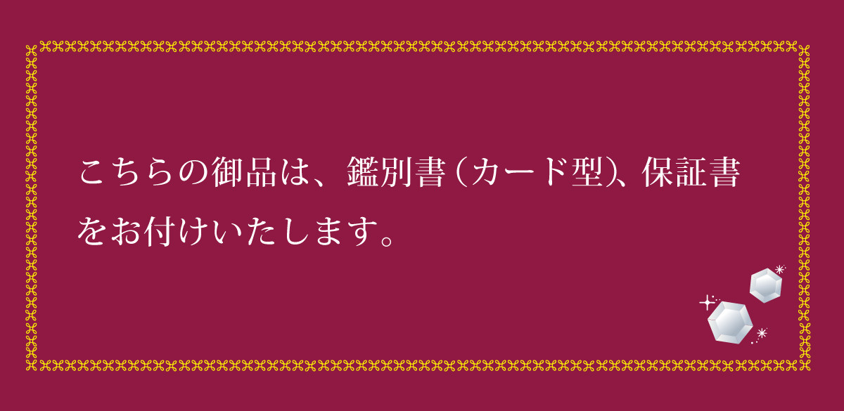 こちらの品物は大月市内で鋳造したものを仕上げしたものになります。弊社はダイヤモンドを専門に取り扱っている業者でございますので、ダイヤモンドの品質に拘りをもって石を選別し、国内有名ブランドと同等以上の検品基準で品物をお造りしてお送りいたします。