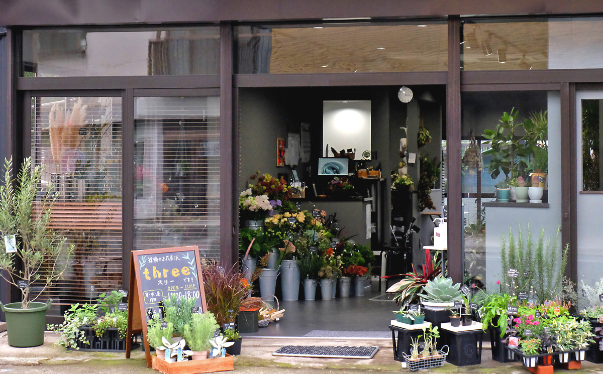 「three」は大月市の猿橋にある花屋です。店主はこの地で生まれ育ち、猿橋周辺をもっと賑わった町に