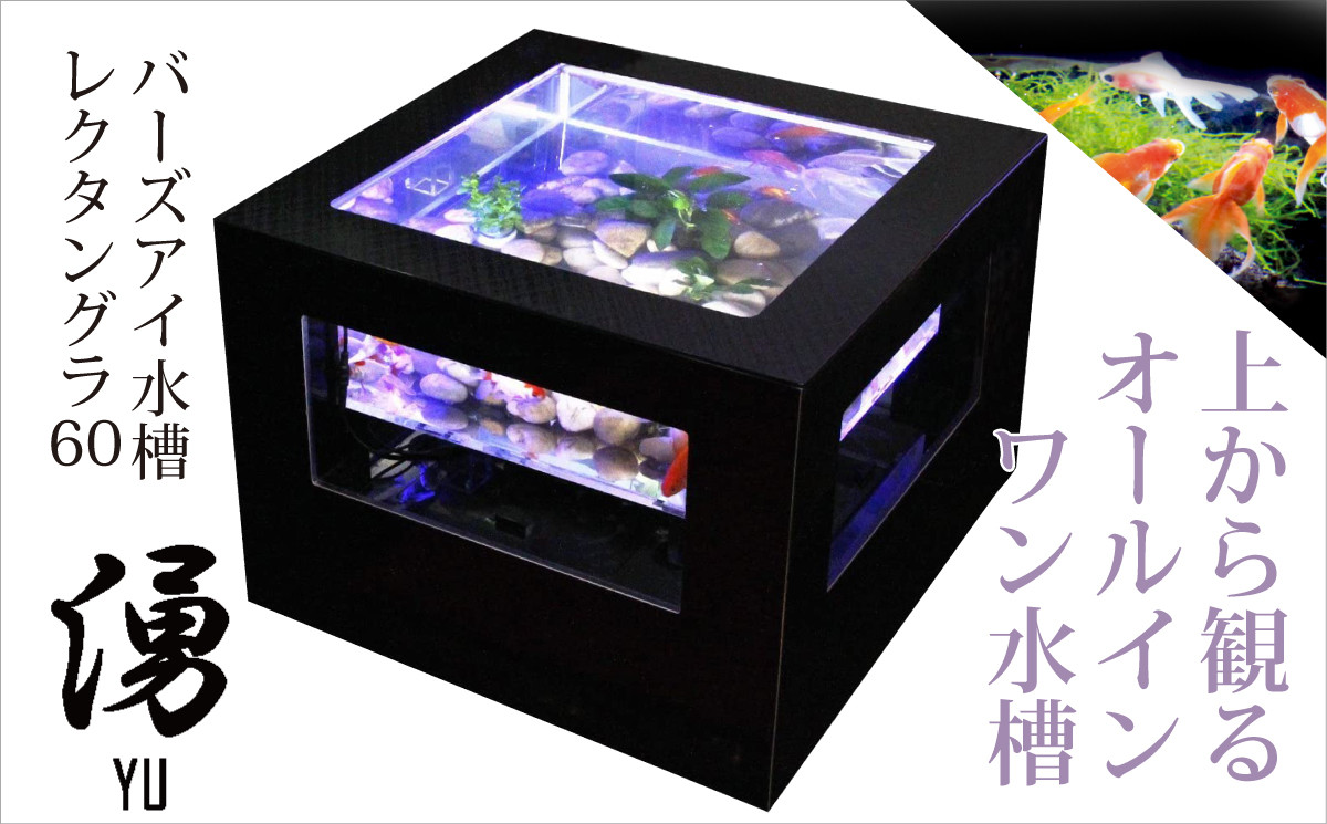 スタイリッシュな外観と機能性に満ちたデザイナー水槽! バーズアイ水槽「湧-YU-」レクタングラ60(ブラック)