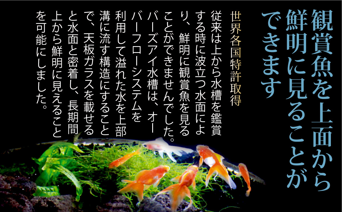 ●この水槽の最大の魅力は、「観賞魚を上面から鮮明に見ることができる」という点です。