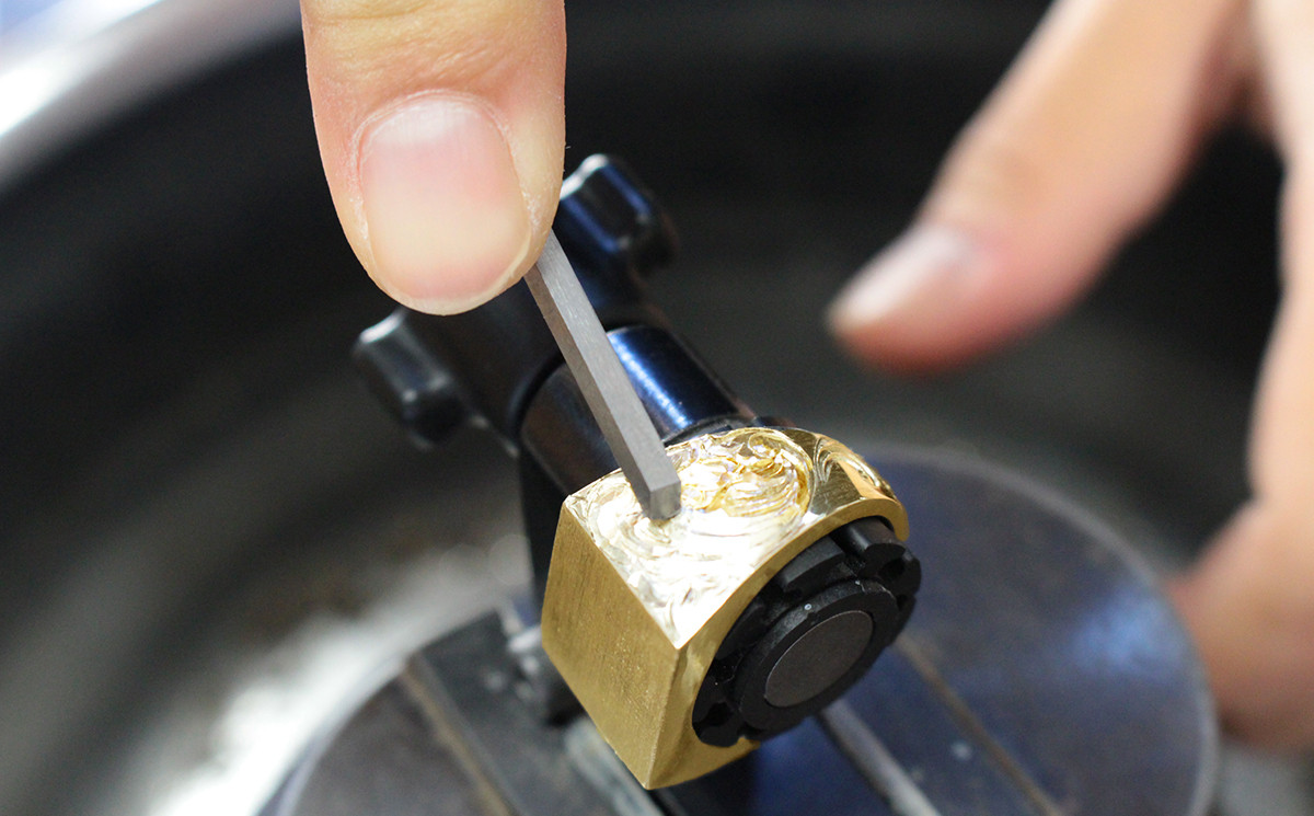 熟練の職人が手作業で模様やデザインを彫り込んでおります。