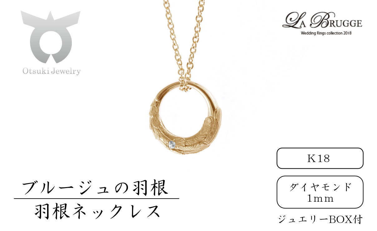 ベルギーフランドル地方のブルージュより想いを込めたアクセサリー ブルージュの羽根ネックレス K18(ダイヤ)