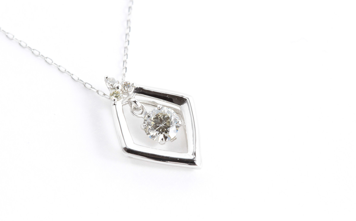 ダイヤが揺れるひし形のペンダントトップで、シーンを選ばずお使いいただけます。