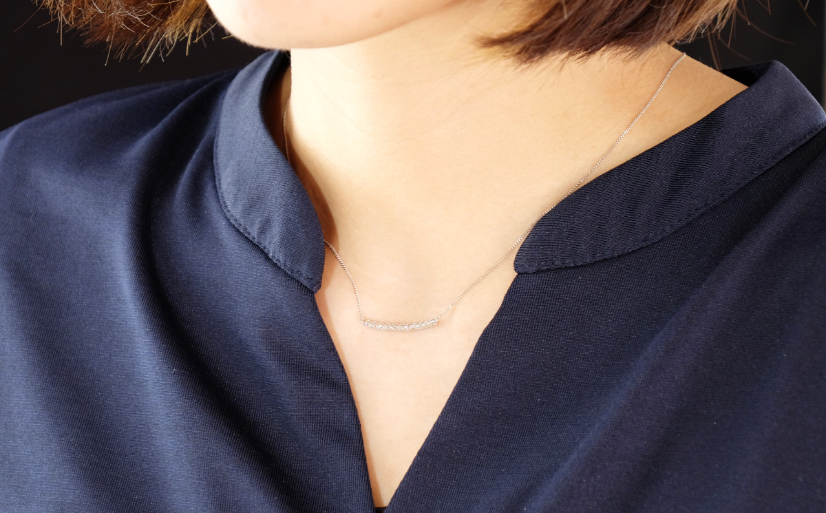 シンプルなカーブラインのダイヤモンド・ゴールドネックレス