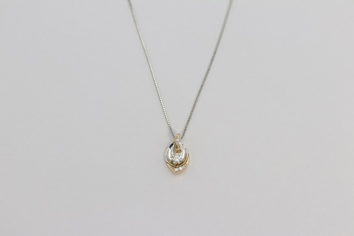 細長くダイヤの付いたペンダントネックです。鑑別書付