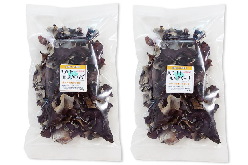 太陽の恩恵を受けた山梨県産の天日干し乾燥きくらげ! 【太陽パワー】天日干し乾燥きくらげ 45gx2袋 [山梨げんき農園 山梨県 韮崎市 20742271]