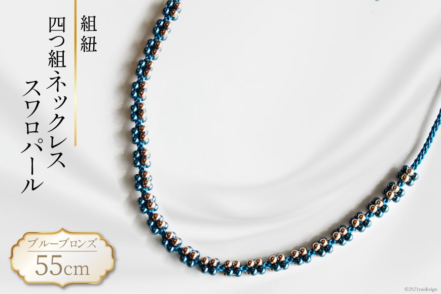 チョイス限定 丁寧な手仕事が光る正絹組紐にパールビーズ 【一点もの】組紐 四つ組ネックレス・スワロパール(ブルー・ブロンズ) [明聡美工房 山梨県 韮崎市 20743211]