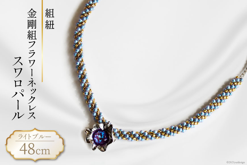 チョイス限定 丁寧な手仕事が光る正絹組紐にフラワートップが華やか 【一点もの】組紐 金剛組フラワーネックレス・スワロパール(ライトブルー) [明聡美工房 山梨県 韮崎市 20743216]