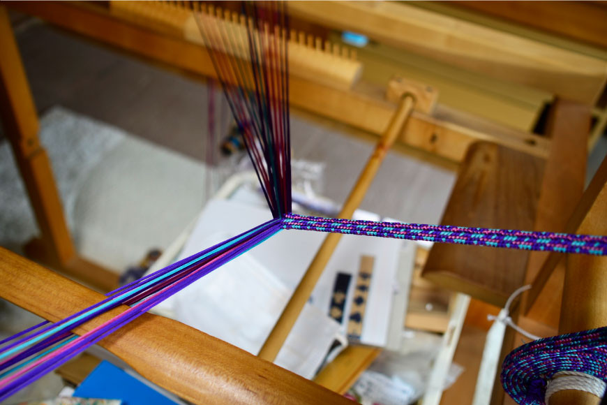 母親が着物を仕立てていたこともあり、一緒に着つけ教室へ行ったことがきっかけで、組紐に興味を持ちました。