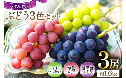 シャインマスカットと赤色、紫黒色の食べ比べセット