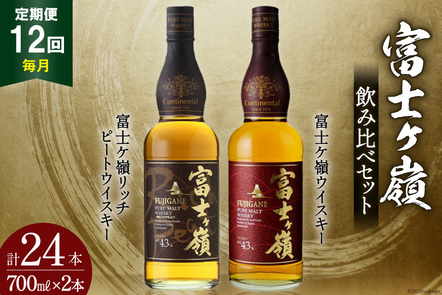 寝る前の楽しみ!2つの味わいを飲み比べ♪ 【12回 定期便 毎月】 ウイスキー 飲み比べセット 700ml 2本 12回 総計24本 化粧箱 富士ケ嶺 ピュアモルトウイスキー ピュアモルト リッチピート whiskey お酒 酒 セット 洋酒 飲み比べ ウィスキー ウヰスキーボトル ハイボール ロック 水割り アルコール 43% 富士山 天然水 仕込み 晩酌 [サン.フーズ 山梨県 韮崎市 20743296]