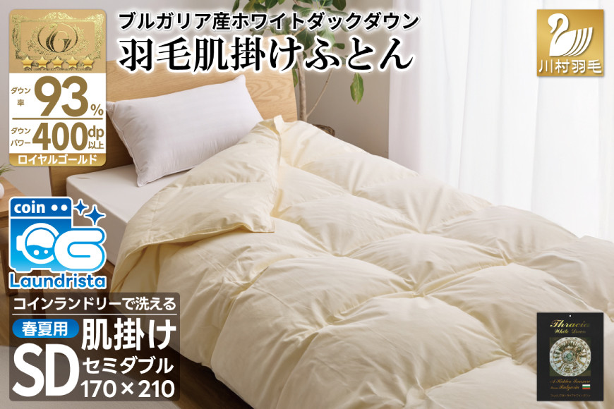 ご自宅やコインランドリーで洗える肌掛け羽毛ふとん 【春夏用】洗える羽毛布団 羽毛布団 セミダブル 肌掛け 肌掛け布団 ダウン 夏 春 ダウンケット ホワイトダックダウン 93% 0.5kg アイボリー 羽毛 布団 ふとん 羽毛ふとん 掛け布団 肌掛 掛布団 400dp 寝具 日本製 国産 夏用 春用 洗える 抗菌防臭 無地 ダニプルーフ 花粉フリー 柔軟加工 コインランドリー [川村羽毛 山梨県 韮崎市 20743227]