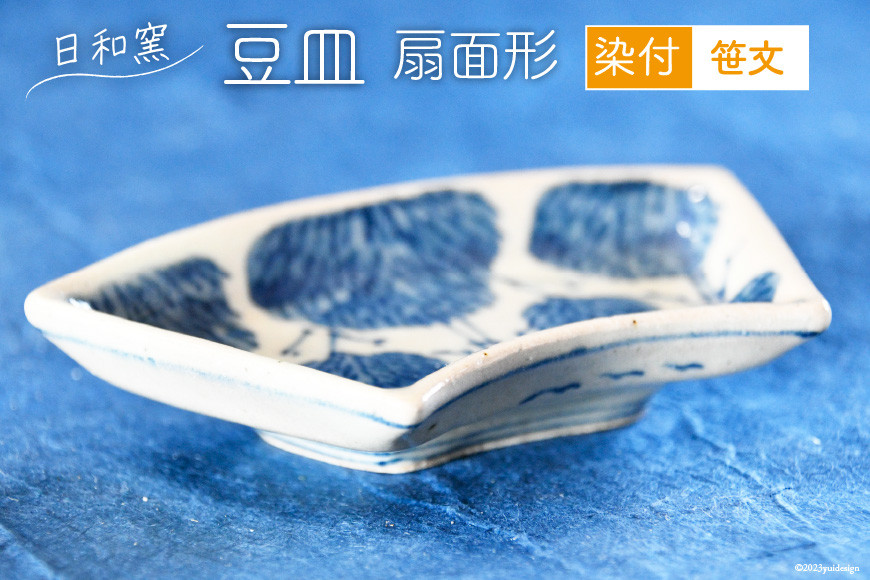 どんな薬味、おつまみをのせましょうか? 豆皿 染付 笹文 扇面形 [日和窯 山梨県 韮崎市 20743551] 陶器 食器 焼き物 皿 お皿 まめざら 小皿 薬味皿 扇 扇形豆皿 日本製 おしゃれ 新生活 お祝い 和 和食器