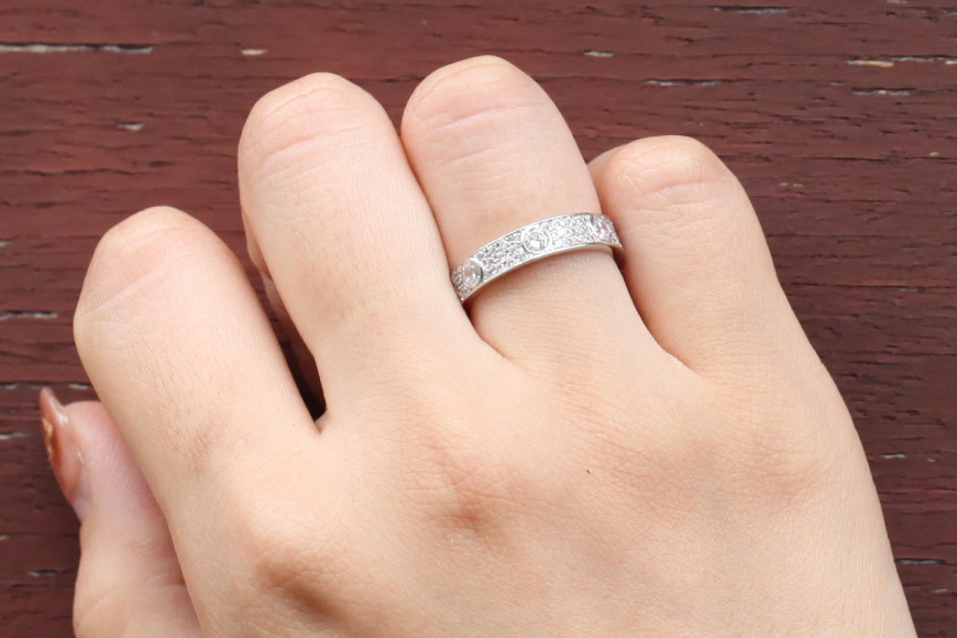 石の見える範囲が広い平打ちタイプは、ダイヤの煌きを一層引き立てます。