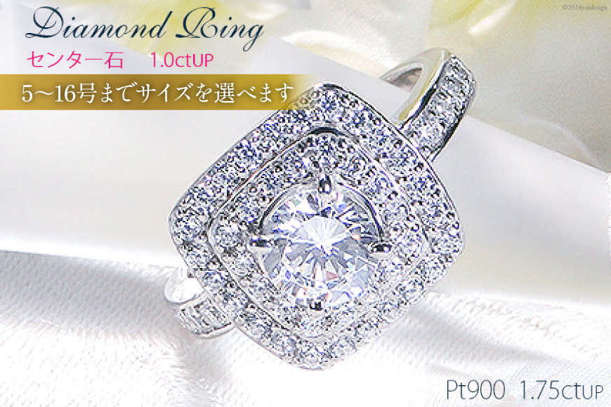 豪華!存在感抜群のVSクラス1ctUP大粒ダイヤ リング Pt900 ダイヤモンド スクエアパヴェリング 計1.75ctUP 中石1ctアップ 【f247-pt】 [オーダーメイドジュエリーメイ 山梨県 韮崎市 20743941] アクセサリー ジュエリー 指輪 プラチナ ダイヤ
