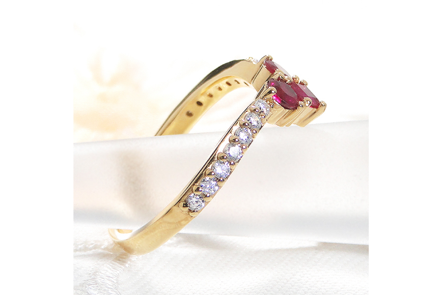 アーム部分には上質なダイヤを14石・計0.2ctをあしらえルビーの美しさを引き立てます。