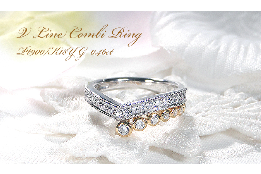 個性的なデザインから放たれるエレガントな輝き 指輪 PT900 K18YG プラチナ イエローゴールド 【0.46ct】5~16号 ダイヤモンド Vライン コンビリング 【f261-ptyg】 [オーダーメイドジュエリーメイ 山梨県 韮崎市 20743770] リング アクセサリー アクセ ジュエリー レディース 18金