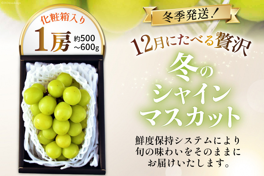 12月にたべる贅沢シャインマスカット! 【2025年12月発送】【先行予約】魅惑のおいしさ! 冬のシャインマスカット 1房 (500~600g相当) [韮崎翠緑 山梨県 韮崎市 20742910] NS-1007 シャインマスカット フルーツ 果物 マスカット シャイン ぶどう 葡萄 種無し