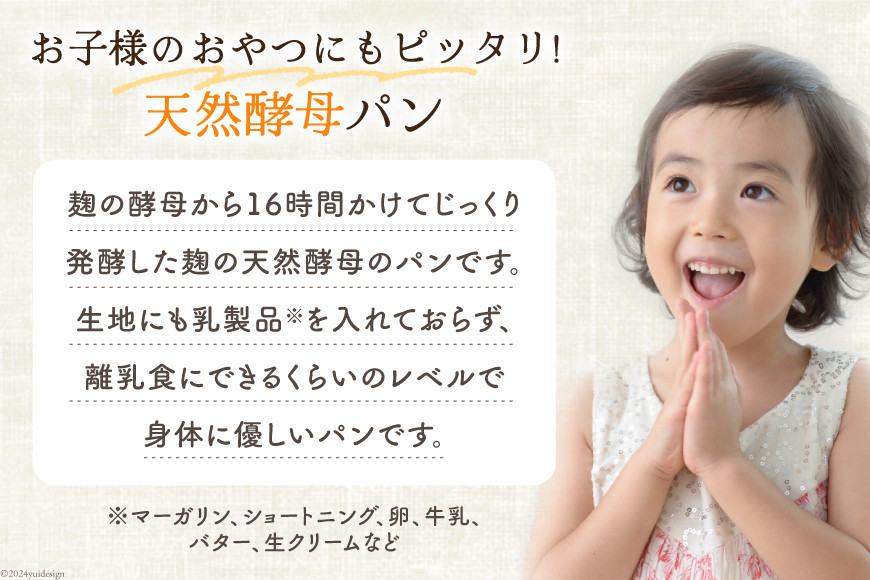 古来より伝承されてきた、味噌・醤油・日本酒等に代表される「発酵食品」は世界に誇れる我国特有の醸造技法によるものです。この麹の酵母は酒臭さやクセがありませんので、小麦の香りのするパンに仕上がっております。