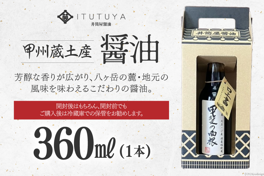 地元の誇り、一滴の感動。 醤油 甲州蔵土産 甲斐の白根 360ml 1本 [井筒屋醤油株式會社 山梨県 韮崎市 20745021] しょうゆ 国産 調味料