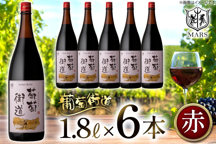 マルスのおススメ一升瓶ワイン ワイン 赤 ミディアムボディ 一升瓶ワイン 韮崎市 マルスワイン 葡萄街道 1.8L 6本セット計 10.8L 赤ワイン わいん お酒 酒 Wine セット 山梨 国産 洋酒 アルコール度 12% 果実酒[本坊酒造株式会社マルス穂坂ワイナリー 山梨県 韮崎市 20744954]