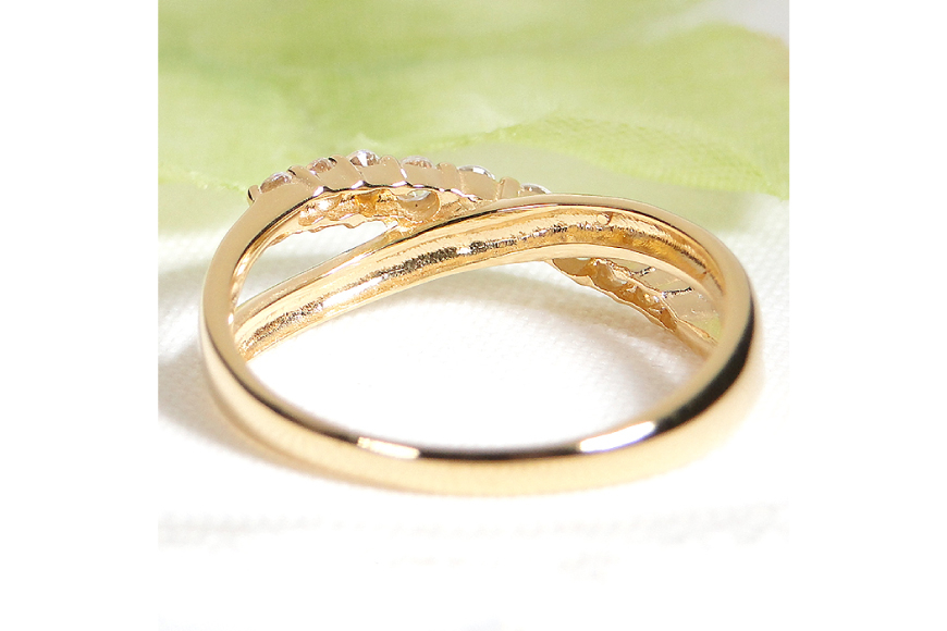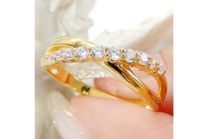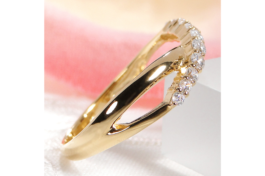 緩やかに交差するゴールドラインに、上質なダイヤモンドを10石 計0.23ctをセッティングしました。