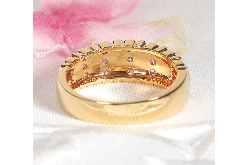 K18イエローゴールドの幅広ダイヤモンドリング。