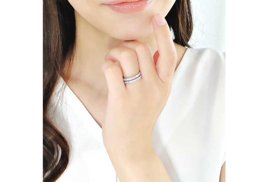 2列に美しくセットされたダイヤとプラチナの落ち着いた輝きが優美な雰囲気。