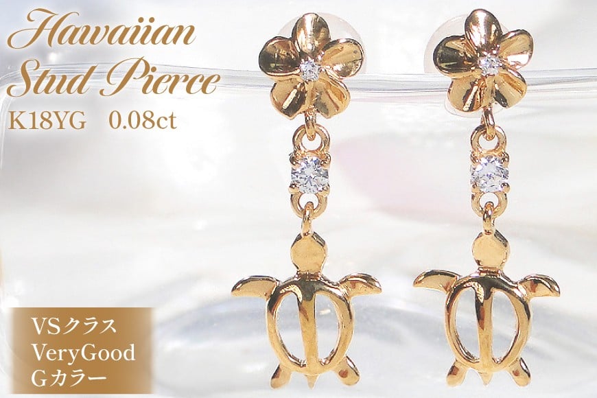 ハワイアンモチーフのキュートなスタッドピアス ピアス ハワイアン スタッドピアス K18YG イエローゴールド ダイヤモンド 0.08ct プルメリア カメ ホヌ ウミガメ 18金 揺れるピアス 【f286-k18yg】 アクセサリー アクセ ジュエリー [オーダーメイドジュエリーメイ 山梨県 韮崎市 20745220]