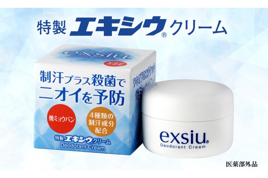 特製エキシウクリームは、汗を抑える成分を4種類配合し、汗とニオイを抑える濃厚クリームタイプです。