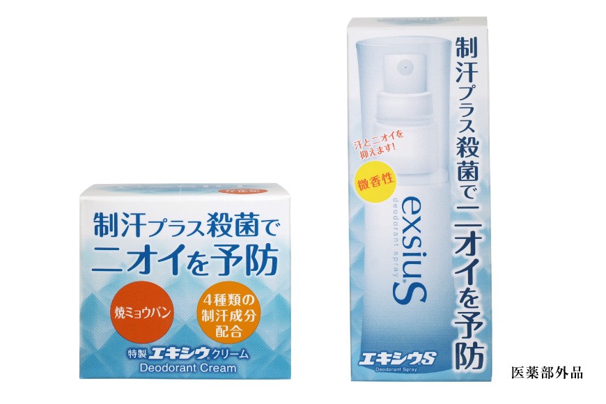汗とニオイのエチケット 2種類の制汗防臭剤のセット 特製エキシウクリーム(30g)×1個 エキシウS(38mL)×1個 2種セット 【医薬部外品】 ニオイ対策 わきが あせ止め 体臭 足 におい 防止 予防 汗 制汗 制汗剤 [東京甲子社 山梨県 韮崎市 20745194]