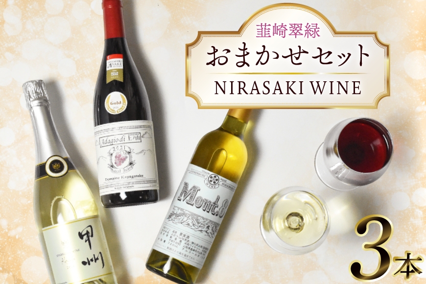 韮崎翠緑厳選!おまかせ3本セット!! ワイン 山梨 韮崎市産ワイン おまかせ 3本 セット NS-0013 [韮崎翠緑 山梨県 韮崎市 20745301] 赤ワイン 白ワイン ワインセット wine お酒 酒 飲み比べ 飲み比べセット 詰め合わせ 山梨ワイン 甲州ワイン