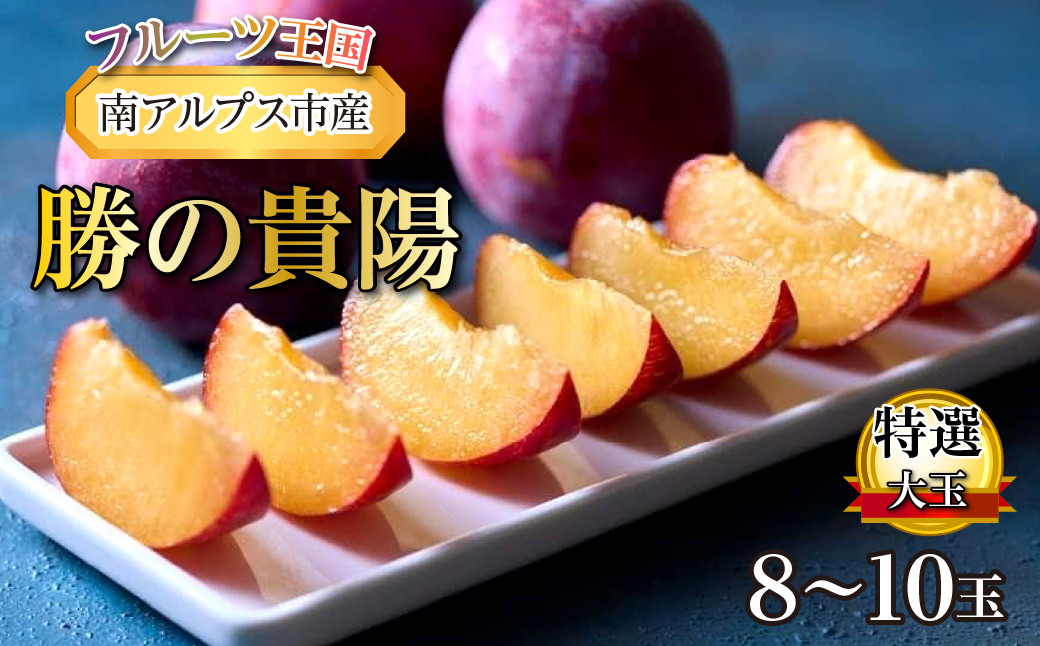 南アルプス市が世界に誇る果物「貴陽」をお楽しみください。 <2026年発送先行予約>『勝の貴陽』特選大玉 8~10玉(7月中旬~発送予定) ALPBB005 | ふるさと納税 すもも 貴陽 プラム 大玉 果物 フルーツ おすすめ 山梨県 南アルプス市 送料無料 |