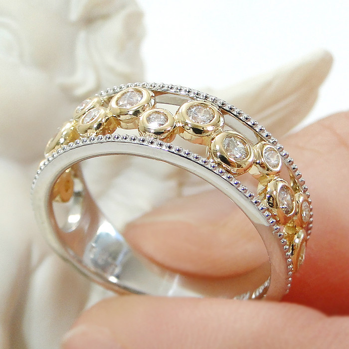 65-9-3 指輪 Pt900 K18YG コンビ リング ダイヤモンド 計0.33ct プラチナ イエローゴールド バブル 透かし ミル打ち【f202-ptyg】 ALPAZ083