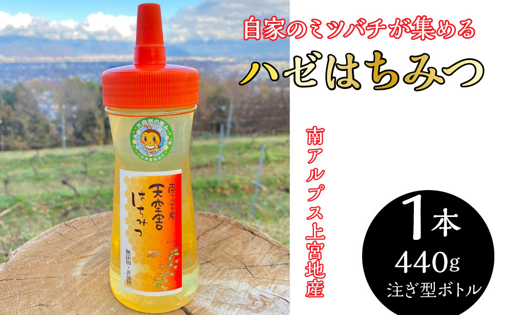 1-9-70 自家のミツバチが集める南アルプス上宮地産 ハゼ蜜 注ぎ型ボトル 440g 1本 ALPAB101