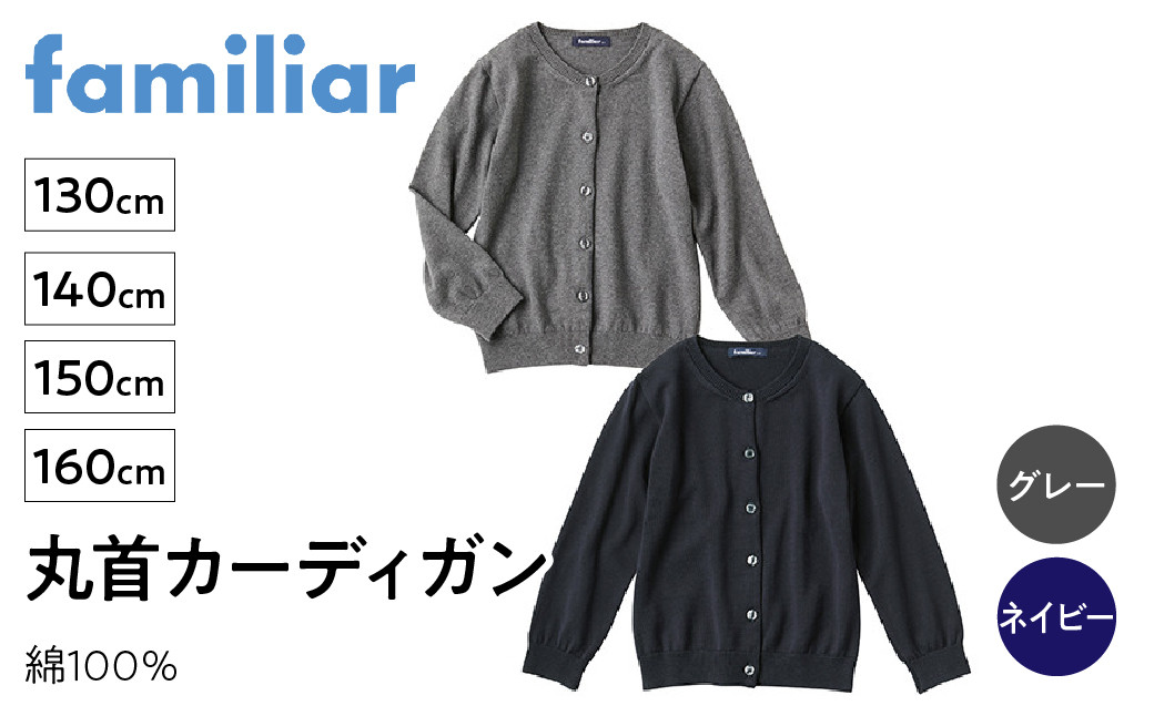 6-130 【ファミリア】丸首カーディガン サイズ130・140・150・160cm 綿100% ALPEB003